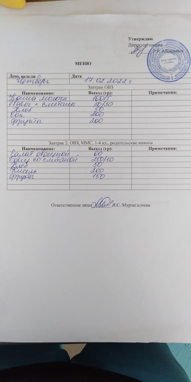 (Завтрак ОВЗ)