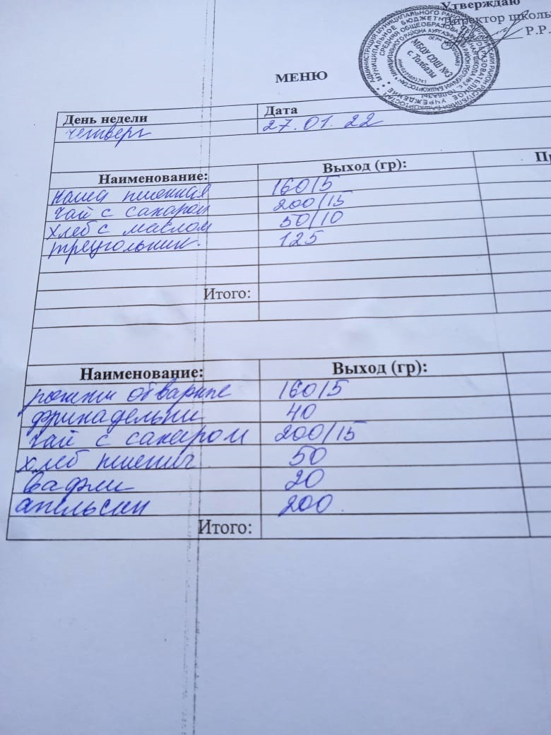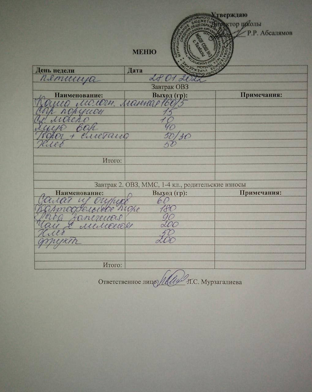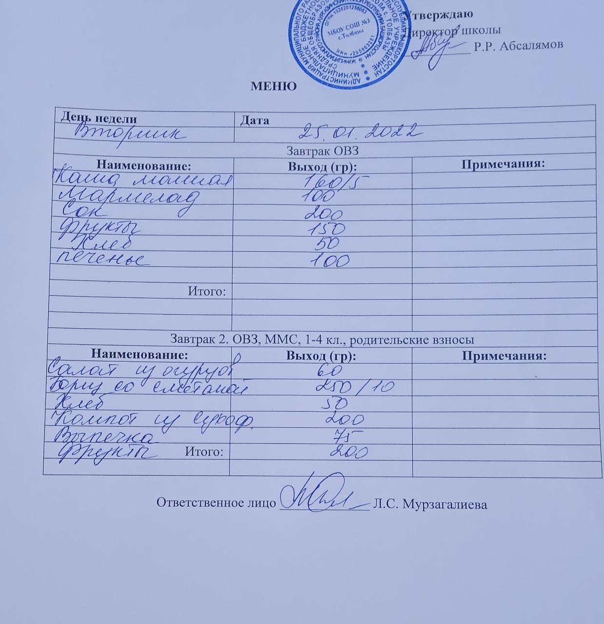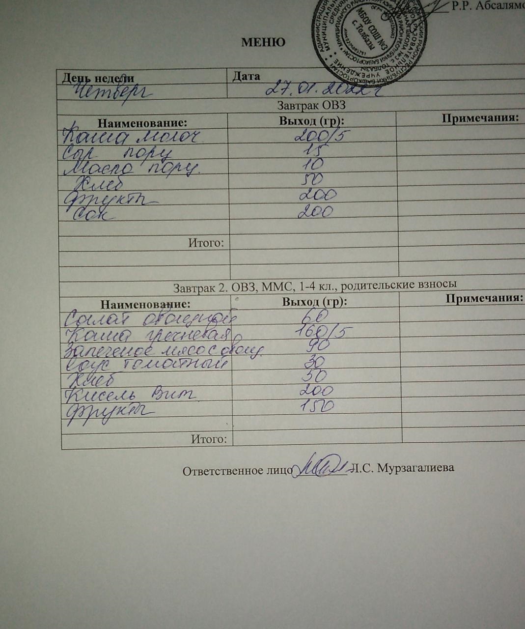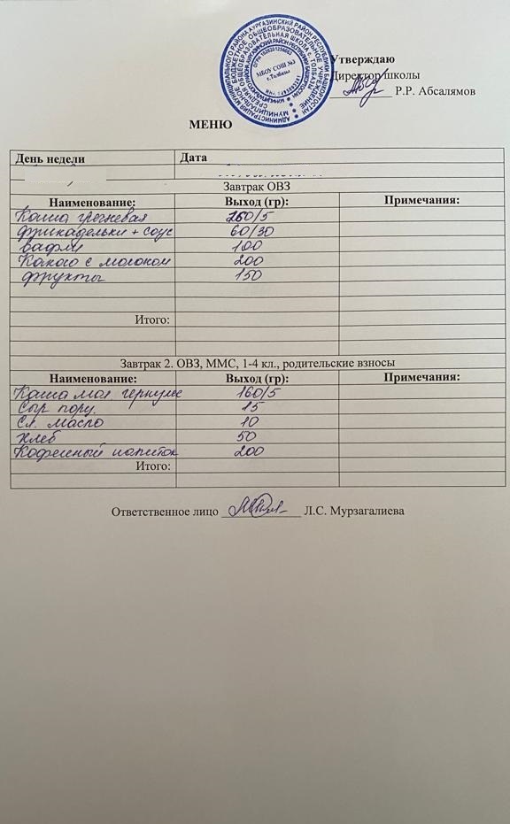 (Завтрак ОВЗ)