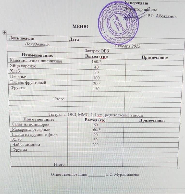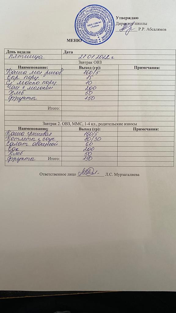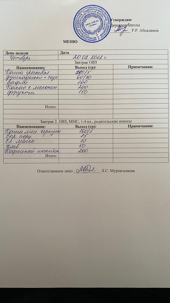 (Завтрак ОВЗ)